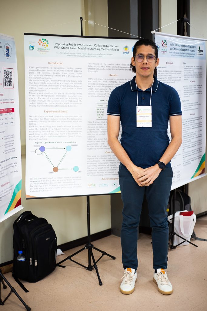 Gabriel Heisler, mestrando no PPGCC e autor do artigo indicado aos finalistas, comentou sobre a proposta do trabalho. “As descrições textuais em notas fiscais de compras públicas costumam ser curtas, inconsistentes e pouco padronizadas, o que dificulta a identificação correta dos produtos. Essa identificação é fundamental em análises, especialmente em tarefas de detecção de fraudes, como a identificação de sobrepreço. O nosso trabalho investigou se grandes modelos de linguagem podem ajudar nessa etapa, classificando automaticamente itens que realmente correspondem ao produto declarado. Os resultados mostraram que, mesmo com textos ruidosos, alguns modelos conseguem alcançar um bom resultado, indicando que podem ser usados na prática em atividades desenvolvidas no Projeto Céos e pelo MPSC”.